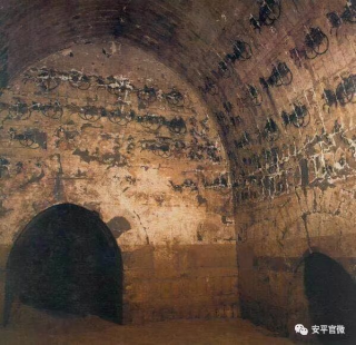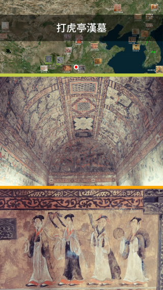 말을 타고 달리며 등을 돌려 쫓아오는 맹수를 향해 활을 겨누는 모습은 수렵도에 상투적으로 등장하는 장면이다. 秦(-221~-206)의 화상석에 그려진 것이 확인되는데, 특히 漢(-206~220)의 화상석에는 무수히 많이 그려져 있다. 漢 이후 이 장면은 무덤방 벽화로 옮겨졌다.