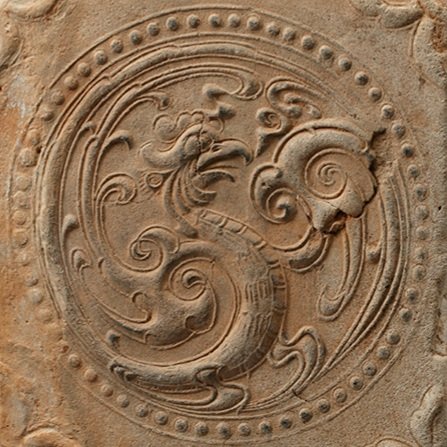 이 역시 산경문의 일종이나 산봉우리 위의 환상적인 구름과 봉황의 모습이 특징이다. 하단에 산수 풍경을 부조하고 상단에는 삼산형 봉우리가 솟았는데, 중앙의 산봉에는 큰 난봉(鸞鳳)이 우뚝 서서 양 날개를 펼쳐 하늘을 향하였다. 근경(近景)의 산봉 앞에는 구름이 안개처럼 겹겹이 흐르고, 산 중턱에는 산과 산 사이로 집이 두어 채 보이는 것이 산사(山寺)가 분명하다. 경내에는 당간지주(幢竿支柱)가 기단 위에 서 있다.