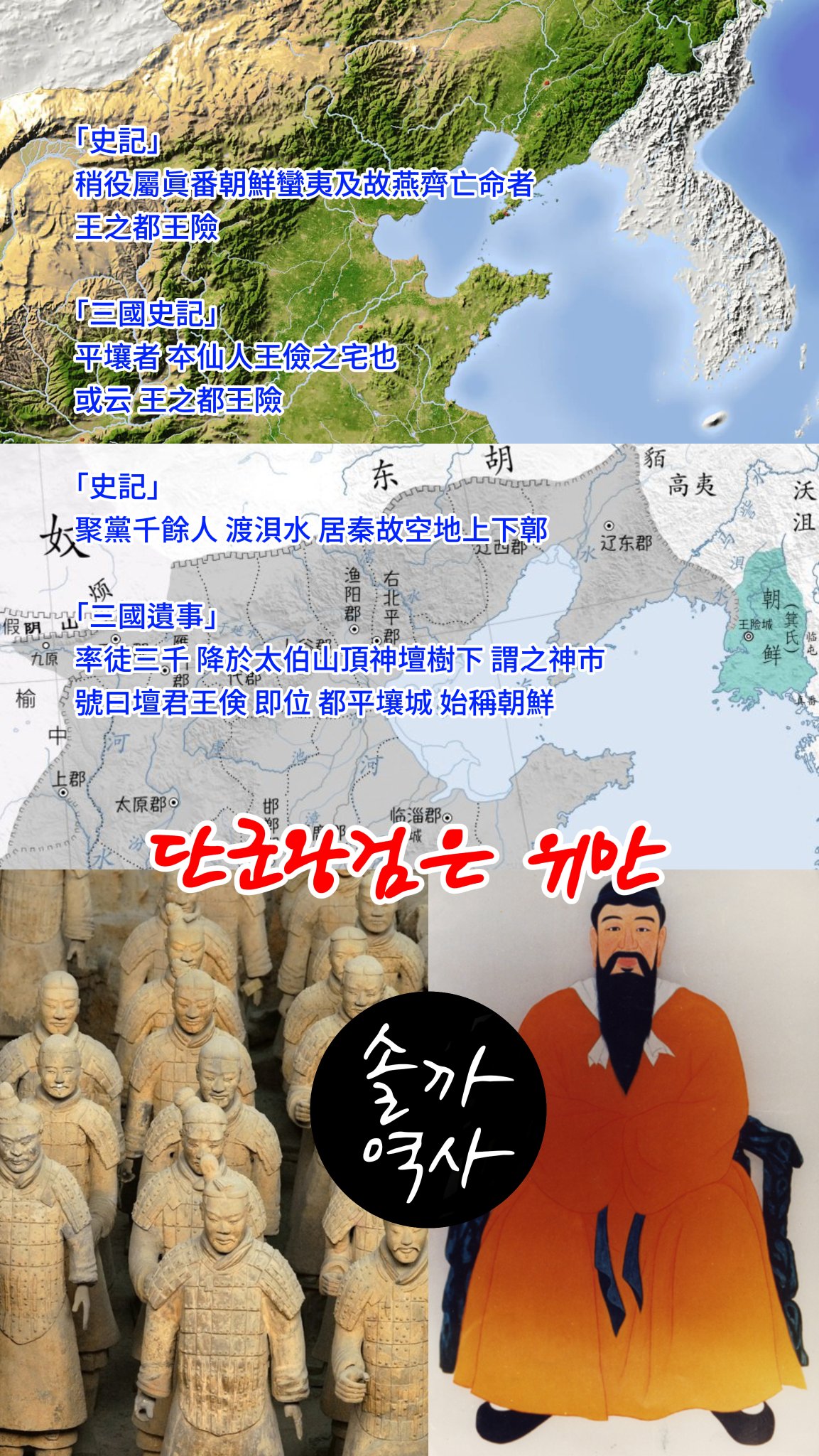 외부에서 들어온 세력이 나라를 세웠다는 점이 같고 평양과 조선이라는 명칭이 일치하며 왕검이라는 인명도 왕험이라는 지명에서 나온 듯하기 때문입니다. 특히 삼국사기에는 왕검에 대해 설명하며 王之都王險 즉 왕이 되어 왕험에 도읍하였다라고 하였는데, 이는 사기에서 위만이 王之都王險하 ...