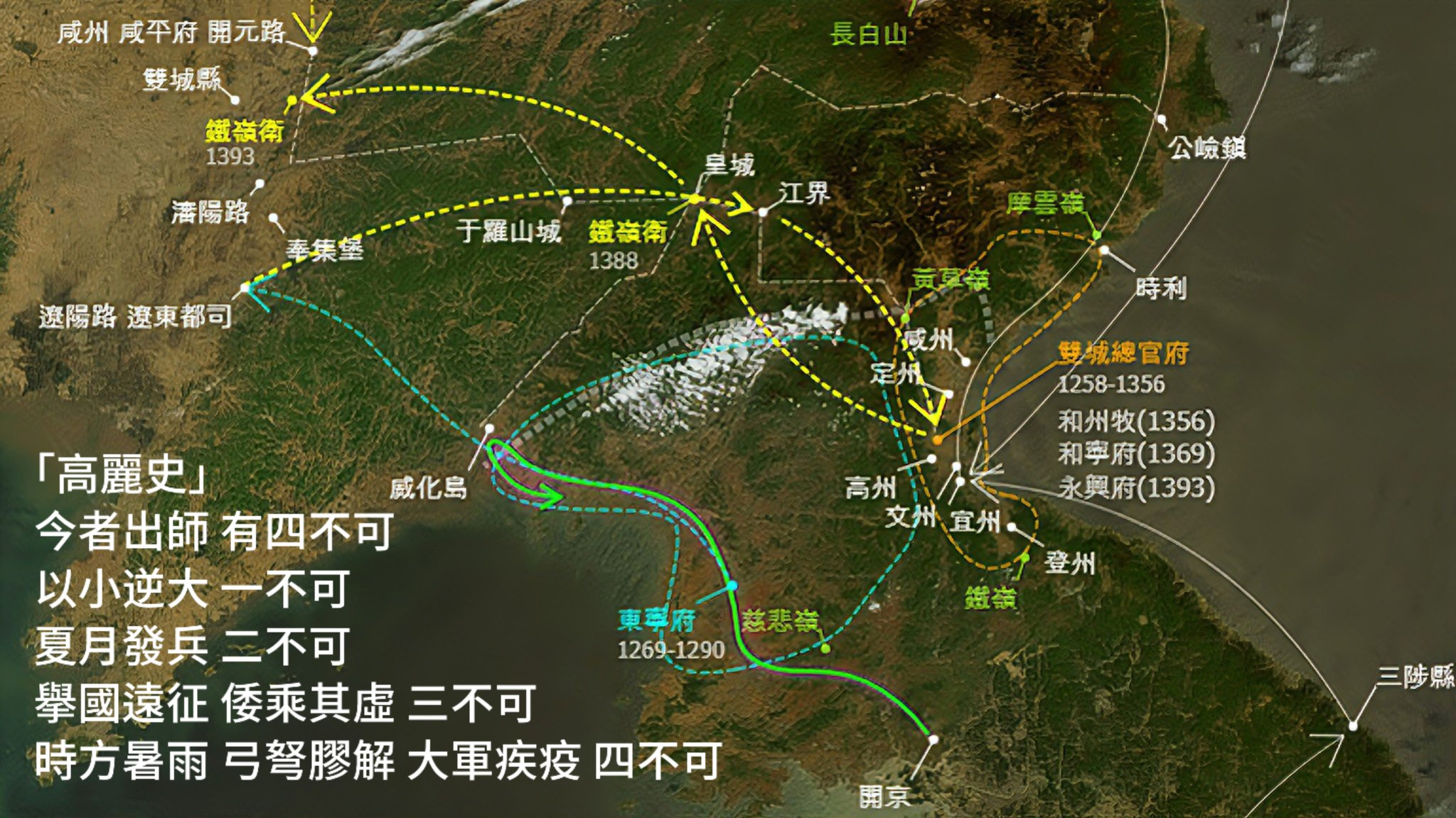 원나라를 몰아낸 명나라는 요양에 요동도사를 설치하고 원나라가 통치했던 동북 지역을 이곳에 소속시키기 시작합니다. 철령 이북도 원나라가 통치했던 쌍성총관부였는데, 원나라가 쇠약해진 틈을 타 왕고가 차지하고 있었죠. 명나라는 이곳에도 철령위를 설치하여 요동도사에 소속시키겠다며 왕씨고려에 통보해 옵니다.