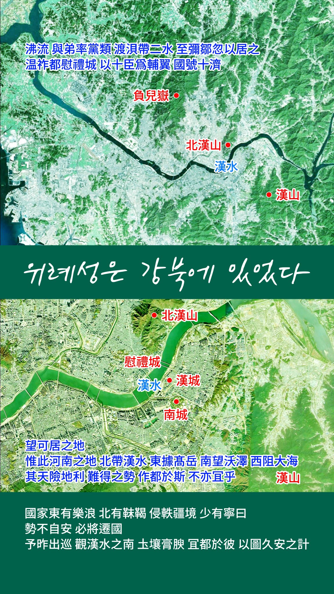 이것은 한강 남쪽에 도읍하였다가 한강 남쪽으로 도읍을 옮긴다는 이야기가 되어 모순됩니다 ...