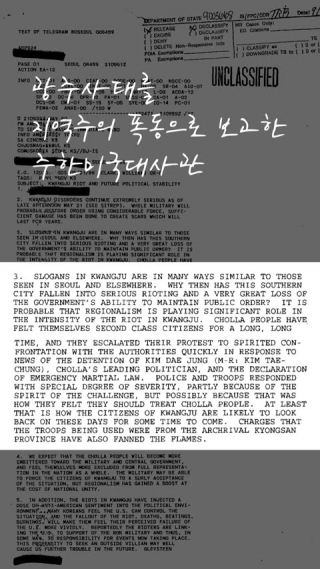 1980.05.21 광주사태를 지역주의 폭동으로 보고한 주한미국대사관
