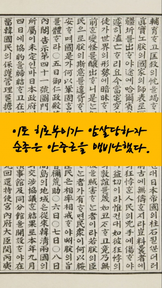 조령을 내리기를 “요즘 안팎의 정세가 어수선하여 국운의 흥망에 대하여 예견할 수 없고 짐의 나라 형편이 외로우며 허약하여 일본의 보호에 의거하지 않으면 어떻게 그 존립을 보장할 수 있겠는가? 생각건대, 그와 같은 고약한 도당이 세계 형세에 어두워서 이따금 일본의 두터운 우의를 무시하려고 하다가 마침내는 전에 없던 변괴를 빚어냈으니 이는 바로 짐의 국가와 사직을 해치는 자이다."