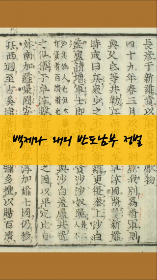 고사산에 올라 함께 반석 위에 앉아 백제왕이 맹세하였다. “若敷草爲坐 恐見火燒 且取木爲坐 恐爲水流 풀을 깔아 자리를 만들면 불에 탈까 두렵고 나무로 만들면 물에 떠내려갈까 걱정됩니다. 故居磐石而盟者 示長遠之不朽者也 반석에 앉아 맹세하는 것은 오래도록 변치 않을 것임을 보여주는 것입니다. 是以 自今以後 千秋萬歲 無絶無窮 常稱西蕃 春秋朝貢 그러므로 지금 이후로는 천 년 만 년 영원토록 늘 서쪽 번국이라 칭하며 봄 가을로 조공하겠습니다”