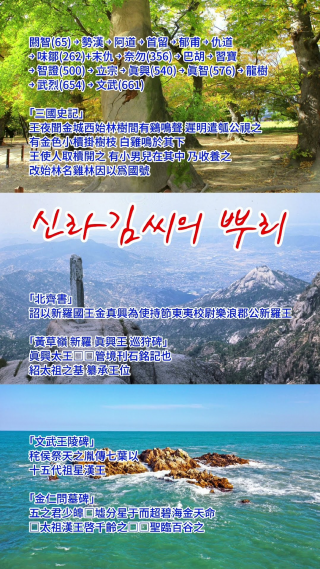 閼智→勢漢→阿道→首留→郁甫→仇道→末仇→奈勿→巴胡→習寶→智證→立宗→眞興→眞智→龍樹→武烈→文武┆閼智부터 味鄒까지 7대인데, 7대는 3천궁녀나 100만대군처럼 한 집안의 유래가 오래된 것을 표현하는 상투적인 어구다.